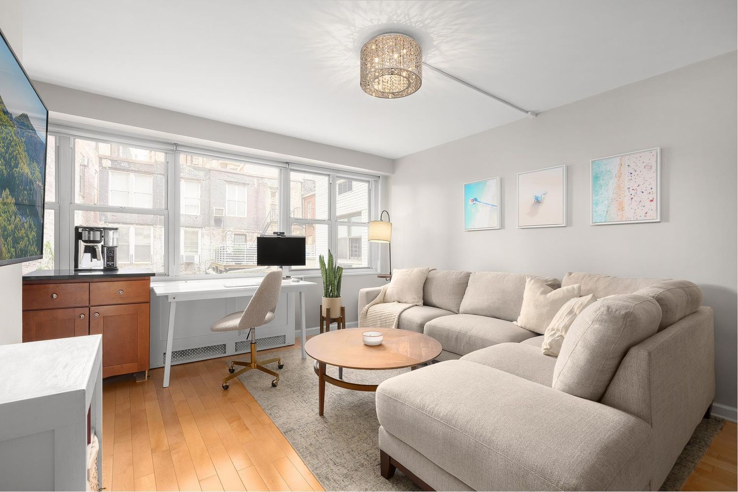 Upon entering apartment 3P, you will be greeted with a wall of western exposed windows that provide amazing afternoon light. With every space thought-out, this studio has an immense amount of custom storage and a murphy bed that provides the opportunity for a generous open living space. The renovated kitchen and bathroom are in excellent condition.