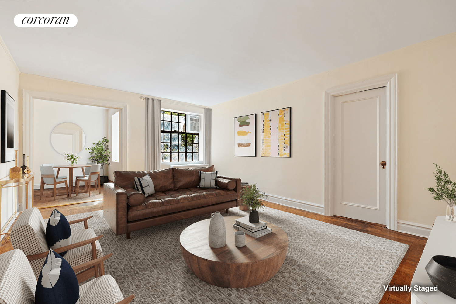 Apartment D21 is a classic prewar 2-bedroom,1-bathroom home. The moment you enter, the oversized foyer and spacious layout impress. Each room is generously sized, offering comfortable living. With seven closets, storage is abundant. One closet is large enough to convert into a home office, perfect for work-at-home needs.