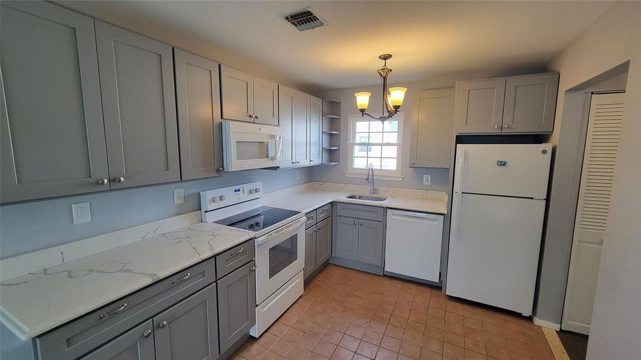 Welcome to Waters Edge Freeport. Top floor unit, 1 bedroom with a large closet, brand new carpeting and a big wide window. Full size bathroom with updated ceramic tile, sink, vanity, mirrored medicine cabinet, deep bathtub and privacy window. Beautiful open design layout eat in kitchen with brand new cabinets, quartz countertops, stainless steel sink, tall faucet and microwave. And a matching stove w/ electric glass cooktop, dishwasher and refrigerator. Spacious living room with sliding doors (built in shades) to a private balcony with a waterview of the canal.