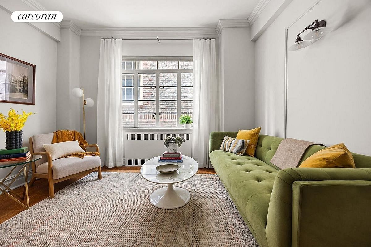 This refined one-bedroom apartment has all the historic charm you would expect from one of Park Slope's premier prewar buildings. Thoughtfully renovated, the apartment features a new kitchen and bath, as well as restored architectural details including beamed ceilings, original oak parquet floors, elegant crown and picture-frame moldings, and new six-foot-wide casement windows with marble sills and custom blinds.