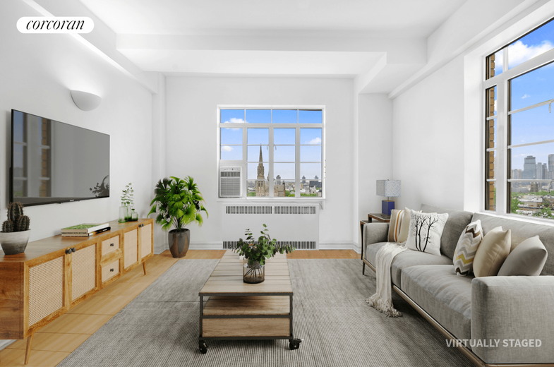 Panoramic views, Perfect Layout! Don't miss the spacious pre-war charm of this rarely available corner unit at 118 8th Avenue. Double exposures from oversized windows flood the large living room and bedroom with western light all day long, and northern light in the morning. 9-foot ceilings, hard-wood floors, and stunning views of downtown Manhattan, stretching from the Statue of Liberty to the Empire State Building make this one bedroom an exceptional opportunity.