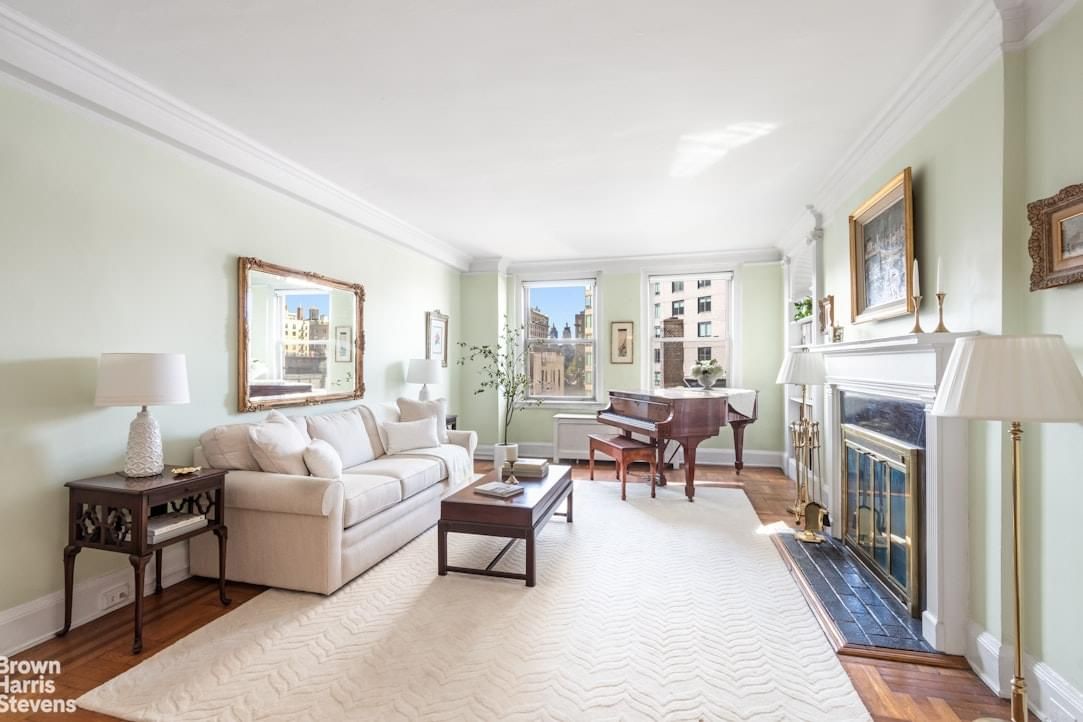 Located quietly in the back of this premier Park Avenue cooperative, but with an abundance of natural light and a mix of sky, treetop and city views West, South, and East, this is the perfect classic six room apartment on the Upper East Side. Off of a private elevator vestibule, you enter the apartment and are immediately greeted by the welcoming foyer and a superb layout for entertaining with the living room on one side and the dining room flanking it on the other. The living room features 9 foot beamed ceilings, a wood-burning fireplace, original wood floors and windows facing West with incredible sunlight and a sliver of Central Park and the Eldorado!