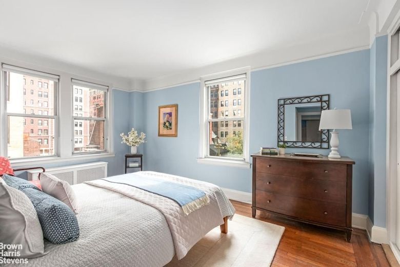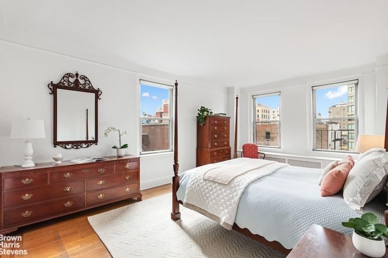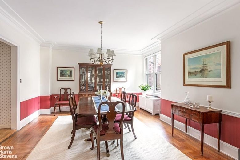 Both bedrooms are very large with double exposures and each with bathrooms ensuite and ample closet space. The corner primary faces south and West with an updated windowed bathroom and large walk-in closet. The formal dining room also faces south with fantastic light. The southern exposure features the back of the Bishops Russian Church on East 93rd Street so the apartment feels very set back, open and the church itself is very pretty to behold. The eat-in kitchen needs some updating but it has a large window with room for stools in front and there is a nicely appointed staff room/office off the kitchen with its own windowed bathroom.