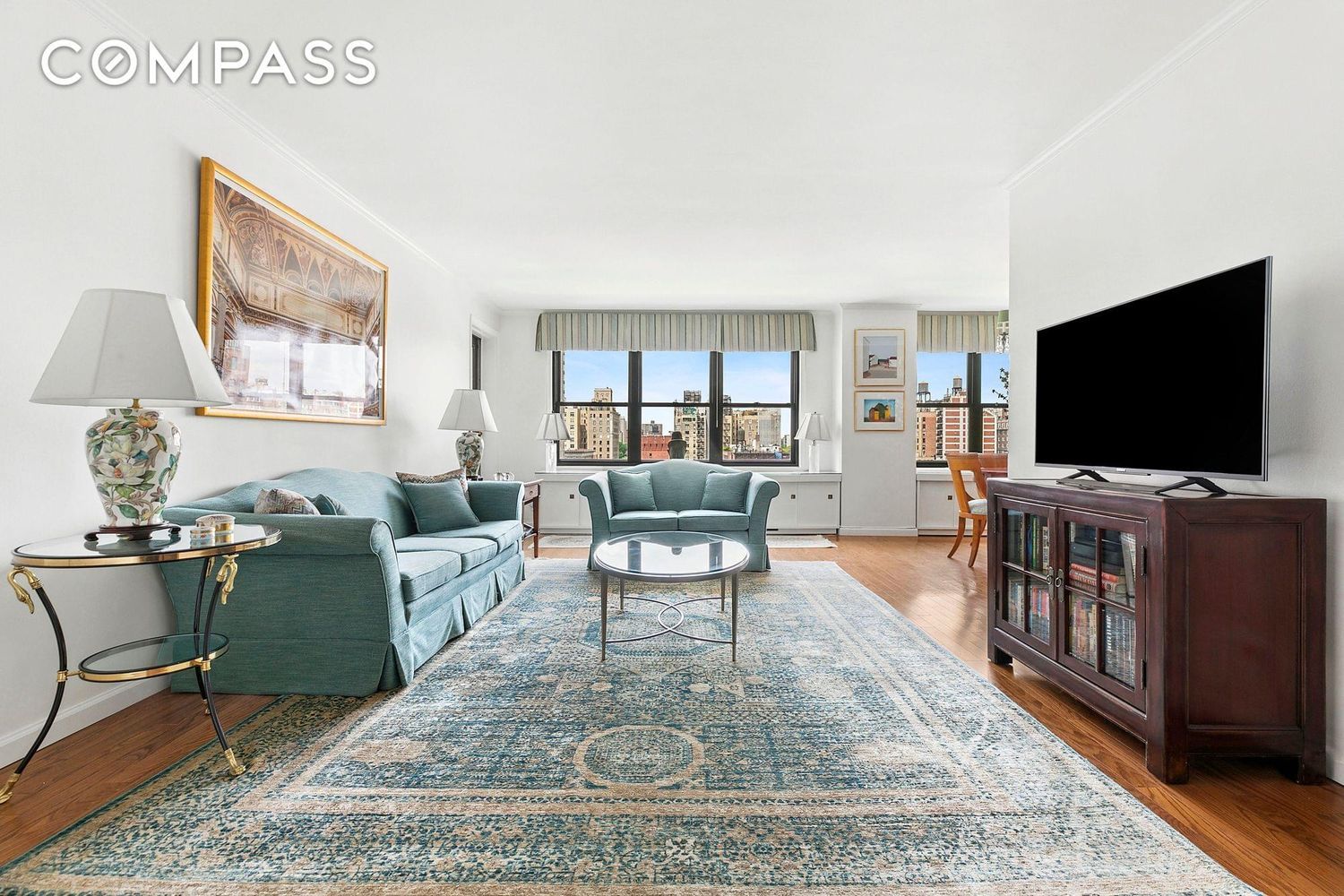 A Hollywood Regency dream on Park Avenue! Move right into this bright, mint-condition oversized high-floor corner 2-bedroom with stunning open views in every room and a large south-facing balcony at 1199 Park, a premier full-service cooperative on Park Avenue in Carnegie Hill. Apartment 10K is filled with light throughout the day, offering close to 1300 SqFt with lovely hardwood floors in the living areas, through-wall air-conditioning in every room, and custom millwork and built-ins throughout.