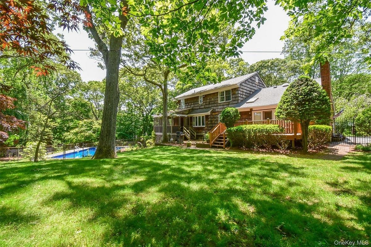 Step inside to discover a warm, inviting interior with gleaming hardwood floors throughout, recessed lighting, and Andersen windows that fill the home with natural light. The heart of the home is the eat-in kitchen, beautifully updated with quartz countertops, stainless steel appliances, and ample cabinetry. This spacious residence features 4 generous bedrooms and 2.5 well-appointed baths, including a primary suite offering privacy and comfort. Enjoy both formal and casual living spaces with a formal living room, elegant dining room, and a cozy family room complete with a wood-burning stove. Unwind in the enclosed screened-in porch overlooking a seasoned garden, or retreat to the full finished walk-out basement featuring rich cedar walls, lending a warm, rustic charm, a home theater, and a gym/yoga area—ideal for entertainment and wellness. Step outside to your private backyard oasis complete with an in-ground heated pool, perfect for summer gatherings and peaceful evenings. A covered front porch adds to the home’s welcoming curb appeal. Additional highlights include a new burner installed in 2025, ensuring energy-efficient comfort year-round. This is a rare opportunity to own a meticulously maintained home in a highly sought-after location known for its privacy, community charm, and proximity to Long Island Sound. Close to shopping, restaurants, wineries, farm stands. Private Beach enjoy endless sunsets, fishing, kayaking, paddleboarding, or simply a peaceful day at the beach.