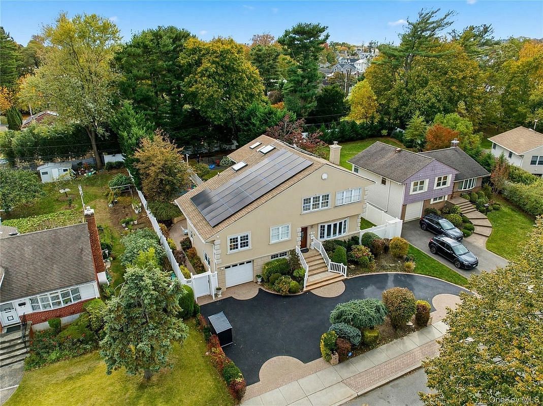 North Syosset Gem! Entertainer's Paradise with property & pool on a fully fenced .30-acre lot surrounded by mature trees! The ultimate blend of privacy, luxury & location! Over 3,200 square feet, this light & bright home features 6 bedrooms, high ceilings, newly finished hardwood floors, an L-shaped living/dining room, an eat-in Chef's Kitchen with room for a dining table, cherry cabinetry, peninsula seating, stainless steel appliances including a Wolf stove & direct access to the entertainer's deck overlooking the sprawling grounds! The grand primary suite spans approximately 30 feet with a lounge area, additional bedroom or home office space, an 18 foot custom walk-in closet, spa bath with steam shower & soaking tub & a Juliette balcony overlooking the expansive property. Four additional bedrooms including a junior en-suite, are complemented by a total of 3.5 baths including one with a dry sauna space. The finished lower level provides the ultimate recreation space or a private gym. Outdoors, enjoy a private resort setting with a new heated saltwater in-ground pool, Jacuzzi hot tub, sports court & playground. A rare opportunity to live, entertain, and unwind in complete tranquility while remaining close to every convenience! Syosset Schools & South Grove Elementary.