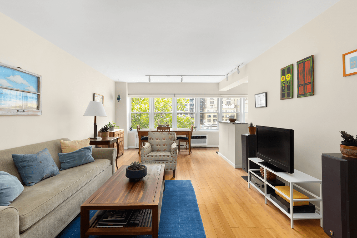 Live among hawks, blue jays and a bright sky over mature trees steps from Park Avenue. This large corner one bedroom with dining alcove combines light, function, and great storage, making it the perfect haven for those seeking a peaceful retreat in the city.