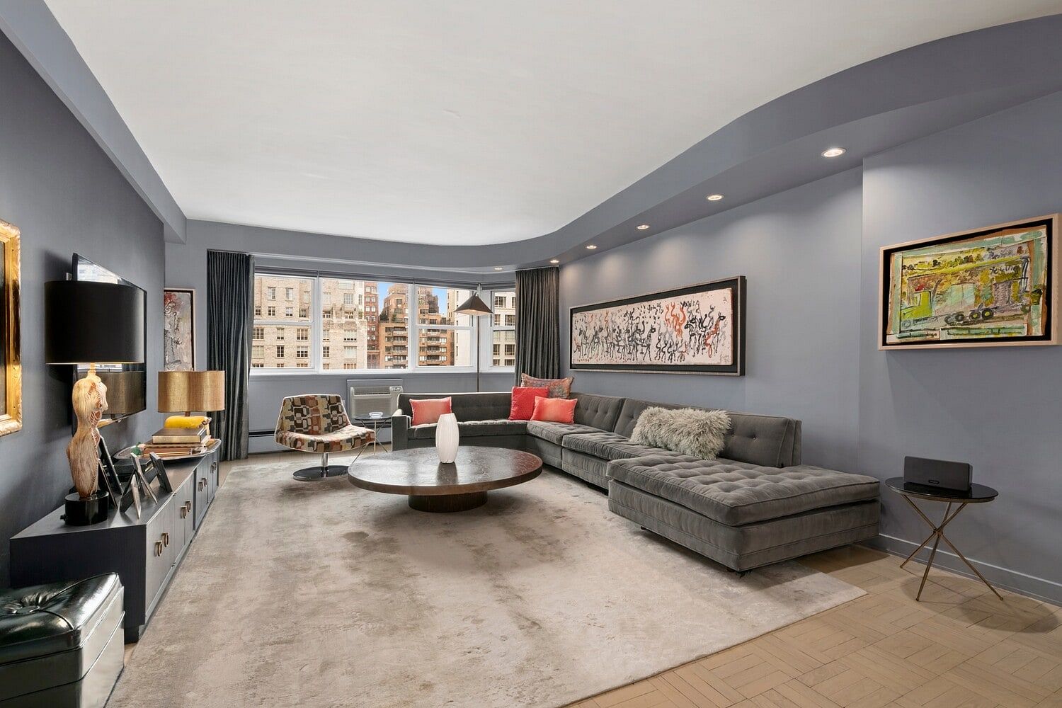 This high-floor, fully renovated two-bedroom, two-bath home offers open city views just off Park Avenue, blending sophistication with effortless comfort. An oversized south-facing living and dining room welcomes you with natural light and generous scale, flowing seamlessly into a thoughtfully redesigned windowed kitchen featuring abundant counter and storage space, a wine fridge, and sleek modern finishes.