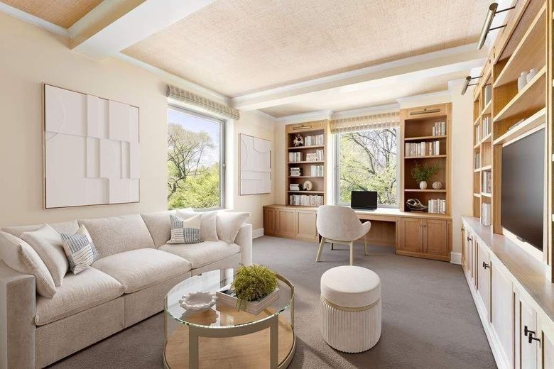 EXCEPTIONAL VALUE ON FIFTH AVENUE! With the three main public rooms directly facing Central Park, this sprawling 4-5 bedroom home is only $1,300 per square foot, making it the best deal in the neighborhood. Stunning Central Park views over Fifth Avenue, spectacular sunlight, and a gracious layout on a grand scale define this breathtakingly beautiful 3,700+ sq ft, one-of-a-kind residence in a rare pre-war Emery Roth condominium on Museum Mile. With majestic Central Park as its backdrop through new tilt and turn picture windows and boasting an exceptional 39 linear feet directly on Fifth Avenue, experience the magic of New York Citys changing seasons from any one of the three principal rooms facing the park. The private elevator vestibule opens on to an impressive gallery with lovely travertine limestone floors flowing graciously into the wonderfully proportioned living room framed by show-stopping Central Park trees engulfing oversized windows and beamed ceilings. The living room sits adjacent to the elegant formal dining room, also with direct park views and adjoining the perfectly appointed eat-in kitchen, a chefs dream with sleekcustom cabinetry, quartz stone countertops, enviable pantry storage, banquette seating for 6-8, breakfast bar, and top-of-the-line appliances including a 48 Sub-Zero refrigerator/freezer, Wolf 6-burner vented range, a second Wolf wall oven, Wolf microwave and warming drawer, Gaggenau steam oven, Miele dishwasher, and a butlers pantry with a Sub-Zero wine cooler, an additional sink, and an appliance garage. The sundrenched and grand corner library, finished in artfully designed cerused oak paneled bookshelves and desk, boasts southern and western exposures into Central Park and an ensuite full bathroom, offering versatile use of space, perfect also as a guest bedroom or a fifth bedroom. The dramatic bedroom corridor is lined with enviably large closets and offers privacy and separation from the public space. The double-sized primary bedroom is an urban sanctuary, featuring both oblique Central Park views as well as sunny southern exposures and a huge ensuite bathroom with double vanity, tub, and separate glass stall shower. Two generously sized south-facing bedrooms share a renovated bathroom and the fourth occupies a corner at the end of the hall with open views facing north and an ensuite bathroom with tub shower. There is a bonus room currently set up as an office, but which could easily function as a media room or an additional guest room. Finally, there is a windowed laundry room, the size of which is rarely seen in a city apartment, featuring an oversized Electrolux washer and vented dryer, a second Sub-Zero fridge and freezer, custom cabinetry and storage, and a wall of windows. Rounding out this special home is an astounding 13 closets, most outfitted by California Closets, multi-zone heating and cooling, Sonos sound system, Lutron lighting, and classic architectural details. The residence has been freshly repainted, ready for you to move right in. A private storage unit conveys with the apartment. Nestled among world-famous museums, educational and cultural centers, restaurants, shopping, and multiple modes of transportation, this exceptional full-service luxury condominium, representing the best of the renowned architect Emery Roth, is a rarity on Fifth Avenue and sits moments from the Conservancy Gardens and the reimaged Harlem Meer and Lasker Rink, the capstone project of the Conservancys 40-year campaign to restore Central Park. Building amenities include a 24-hour doorman, bike room, laundry room, private storage room, walk-in storage refrigerator, state-of-the-art fitness center and a live-in superintendent. Pets are welcome. This gorgeous apartment truly feels like a home!