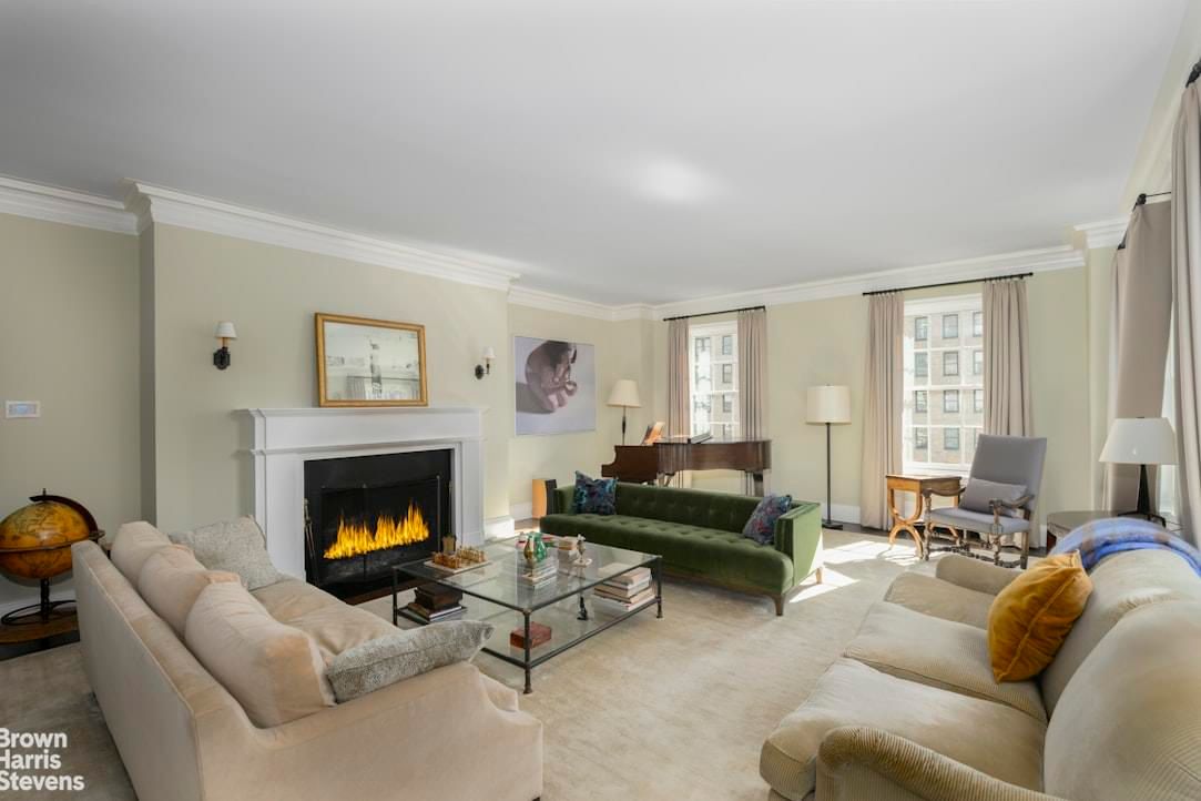 Stunning, elegant south-facing Rosario Candela 12-room classic in lovely renovated condition. Architecturally updated for today's living, with restored original details including six-panel solid mahogany doors, brass olive hinge hardware, herringbone floors, and plaster moldings. The grand entrance gallery forms an impressive fulcrum from which all the public rooms are accessed. A massive corner living room faces south and east onto leafy Park Avenue, with lovely sunlight, grand proportions, and a wood-burning fireplace. A gracious paneled dining room also faces east onto Park Avenue. Adjoining the living room through mahogany French doors, the sunny library and has custom millwork and a second marble wood-burning fireplace. A private hallway provides privacy from the public rooms and leads to four large bedrooms with marble baths and fittings by Waterworks. A large media room could easily be a fifth bedroom, and has another Waterworks private bath. There is an excellent laundry room with ample storage, and a vented Miele washer dryer. The dream kitchen features a center island with butcher block counters, custom glass-fronted cabinetry, white marble counters, a 48-inch vented Viking range and two Sub-zero refrigerators. A windowed breakfast area has built-in banquette seating, and enormous pantry with a temperature controlled wine room leads back into the formal dining room. The apartment also has zoned central air conditioning, a sound system throughout, and six over six Pella architect series windows. Serenely and traditionally decorated, this apartment is an oasis in one of Carnegie Hill's best Rosario Candela buildings. 1220 Park Avenue is a full service cooperative with a gym, private storage, bike room, and a live-in resident manager. 50% financing is permitted and pets are welcome.