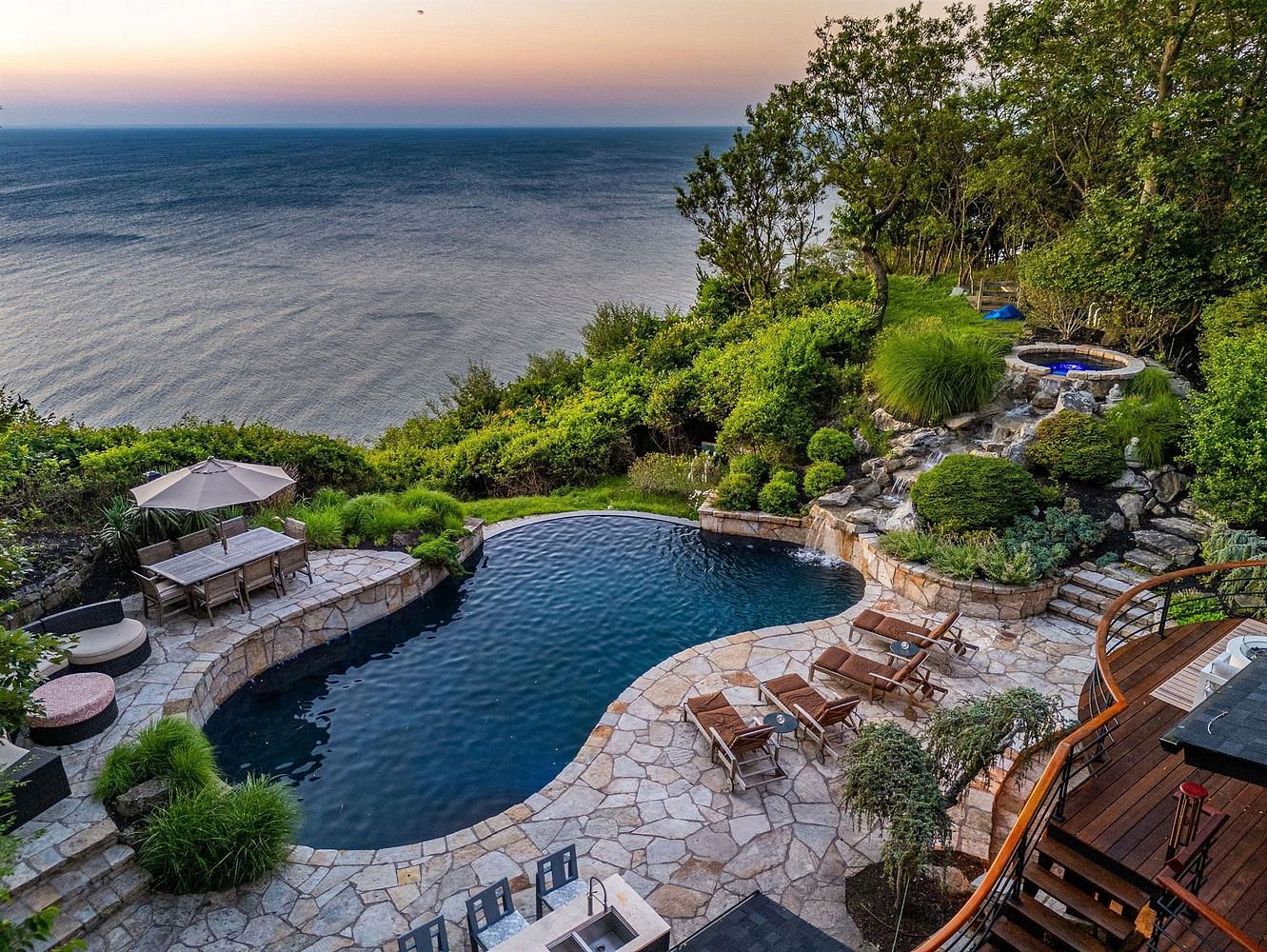 Absolutely Stunning Sound front Mid-Century Modern Home on 2.5 Private, Gated Acres. Enjoy dramatic water views and sensational sunsets from this beautifully renovated retreat. Designed for both relaxation and entertaining, this home features a heated saltwater gunite infinity-edge pool with hot tub and waterfall, an expansive stone patio, and a fully equipped outdoor kitchen with grill, refrigerator, sink, and a new firepit. Inside, you'll find, two fireplaces, gorgeous wood floors throughout, A modern gourmet kitchen with high end appliances and stylish baths. Then entire home was gut-renovated to the studs in 1999, with major renovations from 2020-2022 and a new roof in 2024 and new Mahogony waterside deck. The home is equipped with Smart home technology and a state-of-the-art Sonos sound system (indoor & outdoor). The property is fully fenced with automatic security gate, and features landscape lighting, mature plantings, and a full irrigation system. Also included is Deeded access to a private neighborhood beach. This is truly an entertainer's paradise blending modern luxury with timeless design and unbeatable views.
