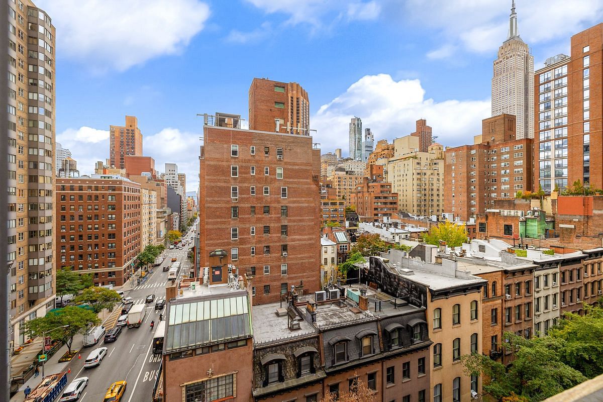 Bathed in natural light, this corner residence faces southeast, overlooking a charming tree-lined street and Lexington Avenue. Dont miss the oblique view of the Empire State Building. Additional highlights include original hardwood parquet floors, beamed ceilings, original prewar details, abundant closet space, and city-proof double windows in both the living room and bedroom, ensuring quiet comfort. With its classic proportions and timeless charm, this residence is a blank canvas ready for your personal touch.