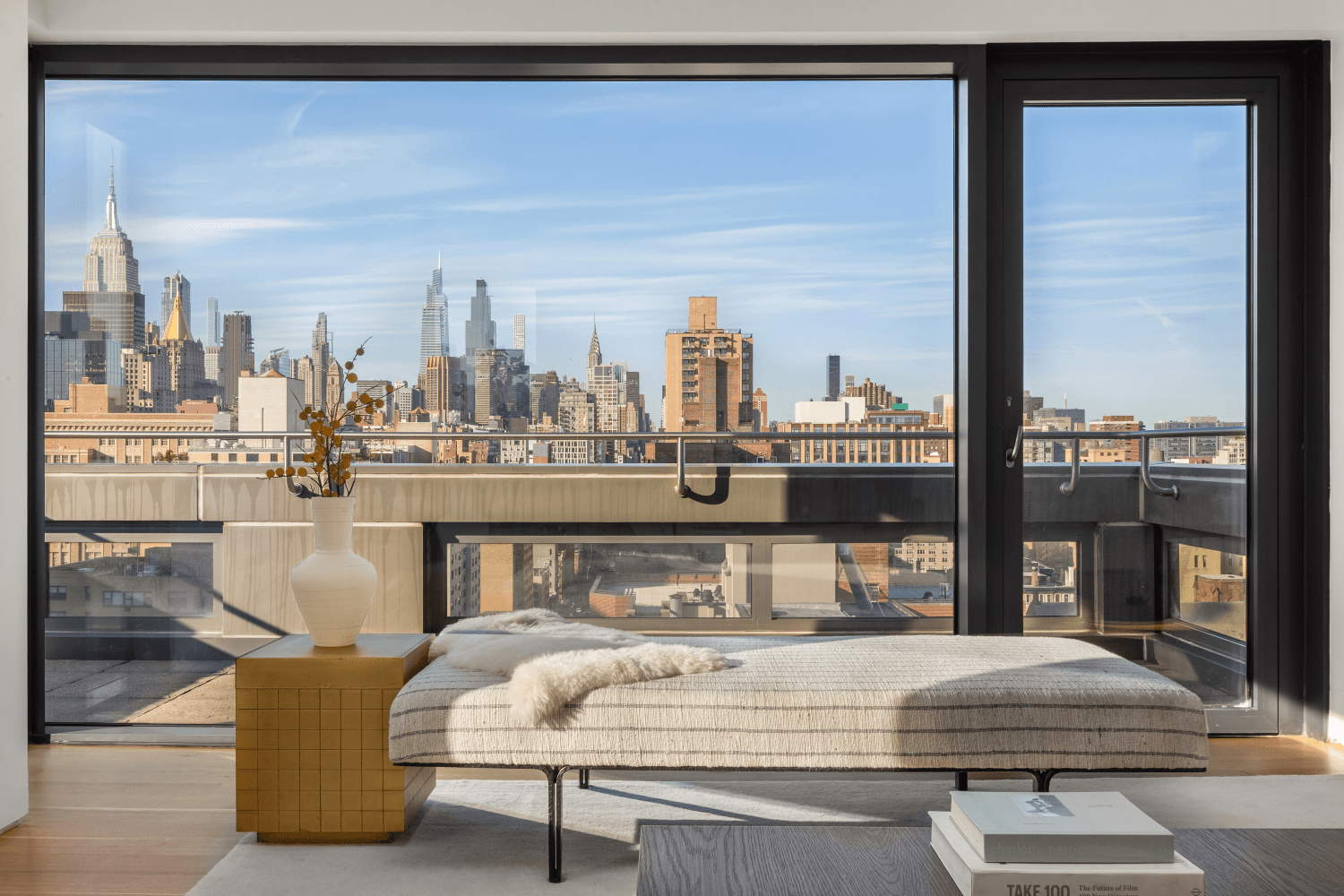 A key-locked elevator opens into a windowed entry hall which leads to a sprawling 36-foot-long great room wrapped in triple-pane floor-to-ceiling windows with three exposures. A large terrace off the living and dining area facilitates seamless alfresco dining with the Empire State and Chrysler Buildings as your backdrop.