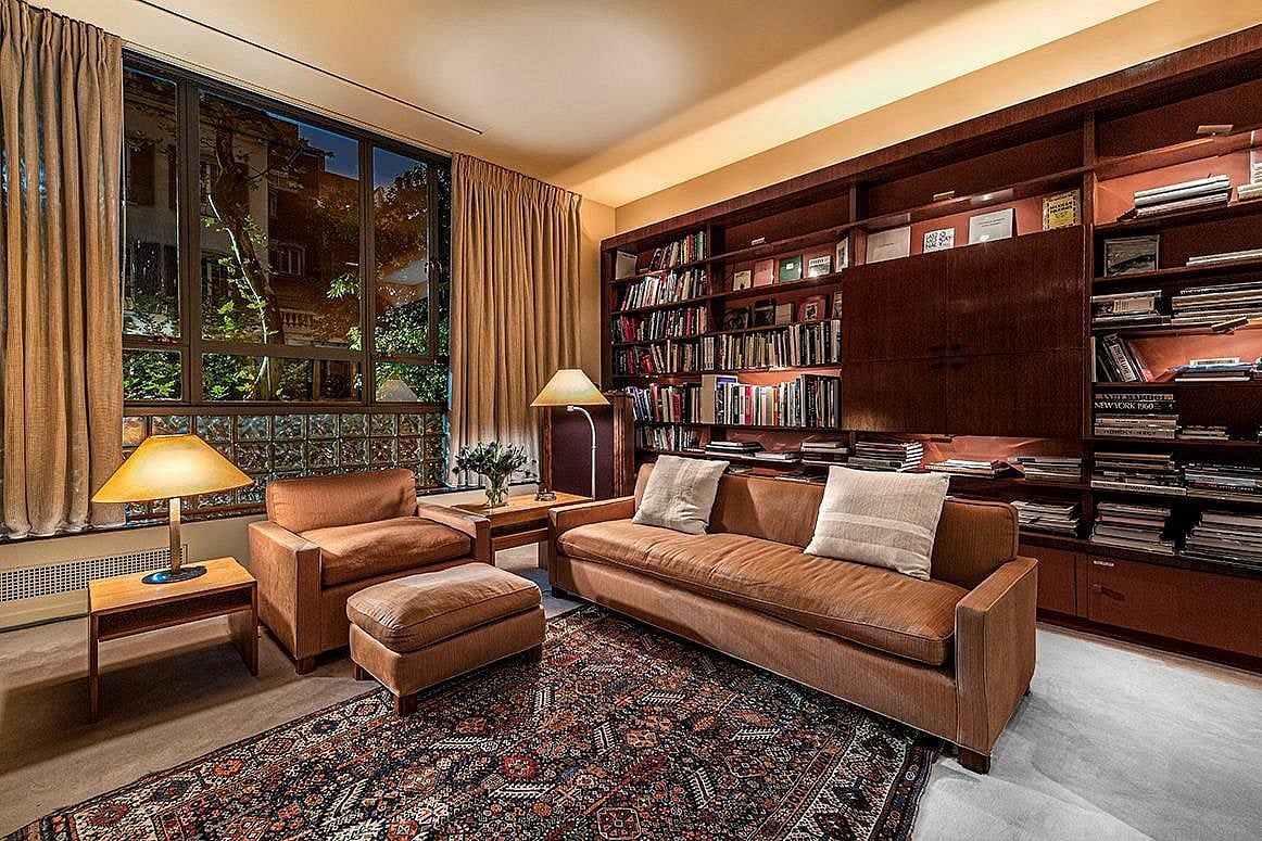 The top floor was designed with 2 guest bedrooms, shared bathroom and dressing area, and small terrace overlooking the garden, plus 3 smaller bedrooms and a bathroom at the front of the house. There is also a large skylight at the top of the stairwell allowing light to filter down.The finished basement has a large media room, wine cellar, utility room and storage, a room housing A/V and lighting panels, plus a large laundry room.The townhouse is completely restored and renovated with state-of-the-art HVAC and custom lighting while retaining the vision of Dorothy Norman and William Lescaze. The current owner researched and implemented the exact colors that Lescaze used to fully capture the spirit of the house as it was intended. The townhouse also features the original furniture and built-ins which were designed by Lescaze for the residence, all carefully restored to "new."