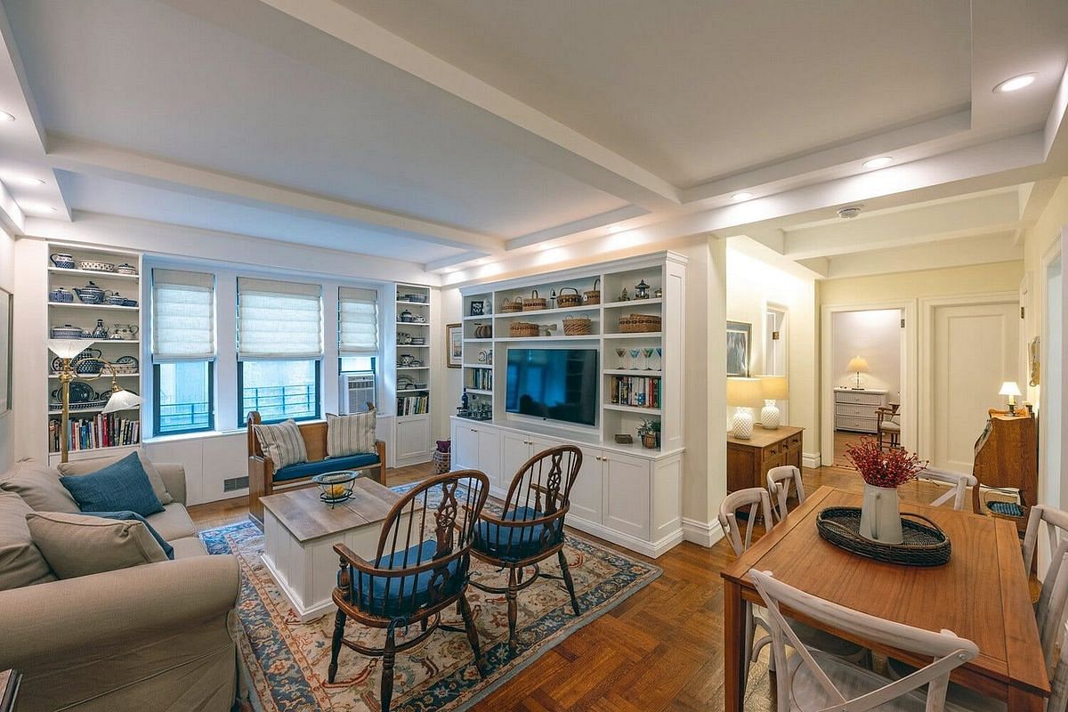 General upgrades to the apartment include new electrical outlets, hard-wired smoke alarms, and custom Roman window shades. New window screens have been installed throughout. The entire apartment has been freshly painted and is equipped with three Frigidaire window air conditioning units. Eight inch sculpted baseboards run throughout the space, giving the home a clean and refined finish.