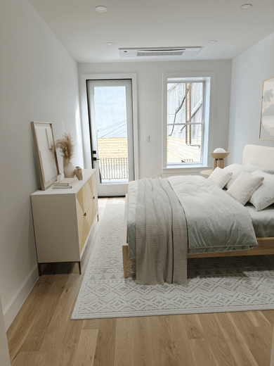 Residence 1 is a two-bedroom, two-and-a-half-bathroom duplex home featuring a large private yard and spans just over 1,600 square feet with south-east facing windows. As you enter the home, you're greeted by a sense of intention that just feels right. You are initially greeted by a comfortably open living space just off the kitchen on the parlor level.