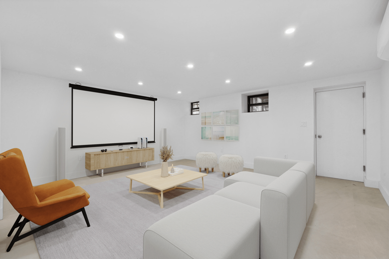 Heading down to the lower level of the residence you'll find the recreation room offering essentially a large second entertainment space perfect for a den, gym, creative studio, and more as well as a half-bathroom.