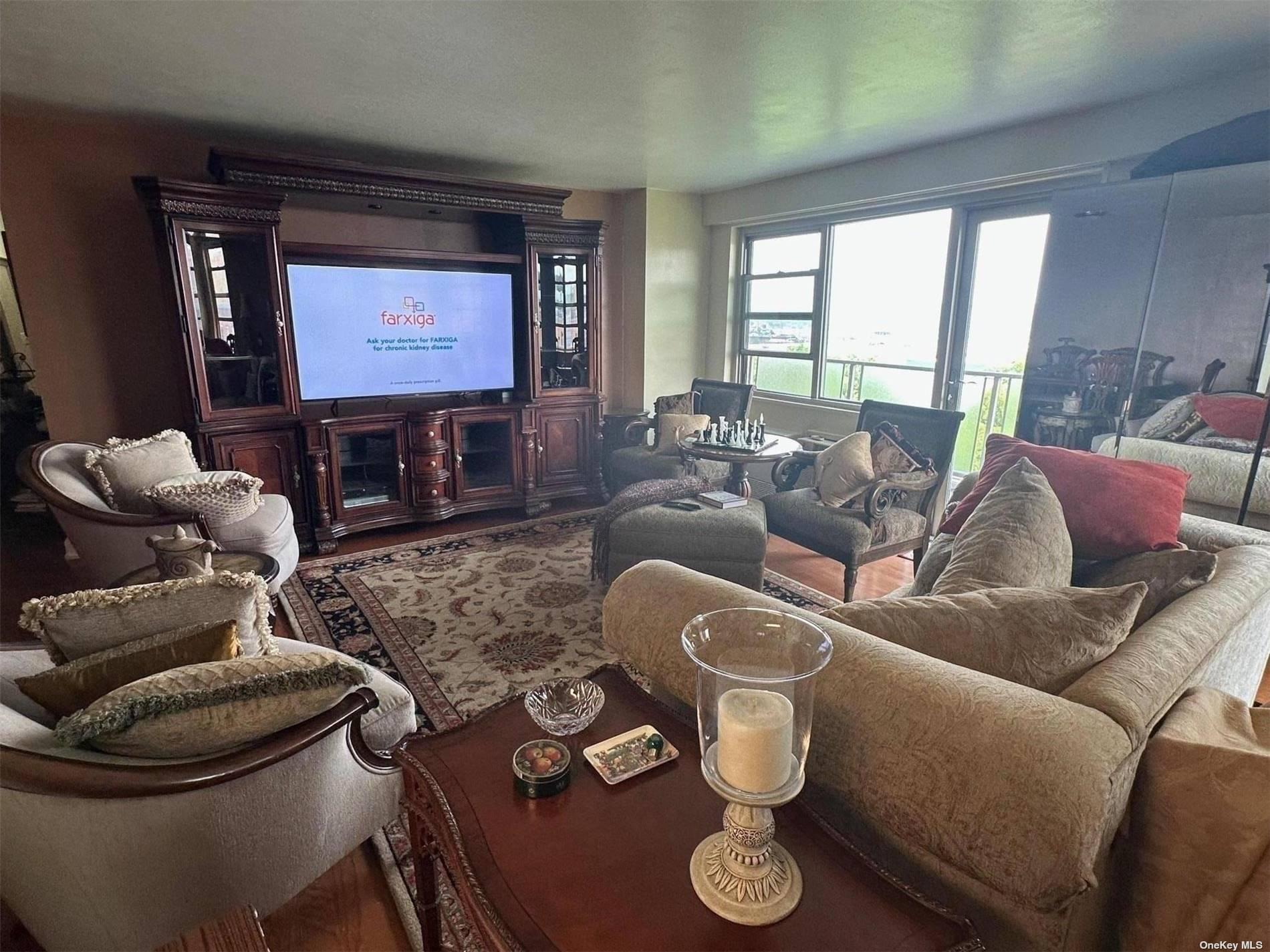 Welcome to your new home! This spacious 2-bedroom, 1 bath 989sq ft condominium located on the 8th floor is Beautiful. Generous floor plan with open concept that flows perfectly. The unit features gorgeous hardwood floors throughout and beautifully renovated bathroom with floor to ceiling tiles. This galley kitchen is a chef's dream! Newly renovated with stunning marble countertops, wood cabinetry, beautiful backsplash, and sleek stainless steel appliances. With a spacious Master bedroom comfortably fitting a king size bed and complete furniture set. Large closet featuring French doors! Take a step outside on your balcony for fresh air and enjoy the tranquil surroundings. 98sq ft of outdoor space to create the perfect oasis. This building offers 24-Hour security, an elevator, an on-site management, providing peace of mind and convenience. Additionally, there is a playground, recreation room, laundry facilities available for your use. PET FRIENDLY!!! Centrally located just minutes away from Gateway Shopping Mall, Shirley Chisolm State Park, Brooklyn Sport Club, shops and more! Belt Parkway and public transportation close by! Don't miss out on the opportunity to make this yours!