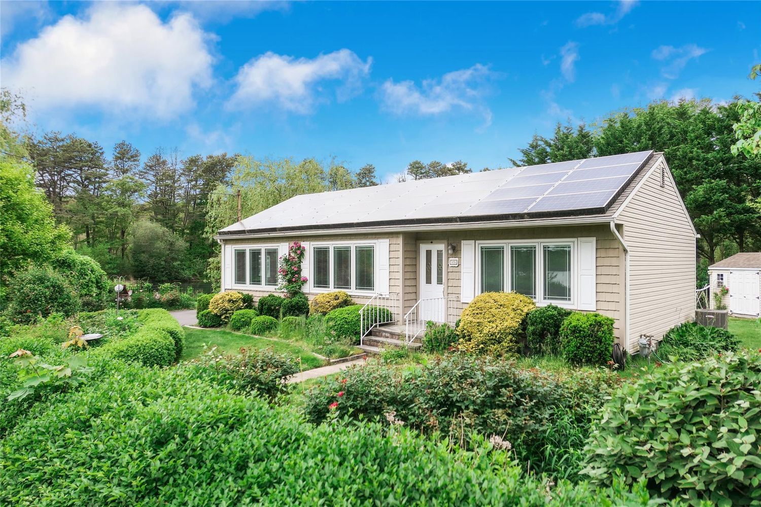 Energy-efficient solar panels make utility bills less daunting, and central air conditioning keeps things cool when summer heats up. Storage and convenience are covered with an attached garage and a large driveway for ample parking.