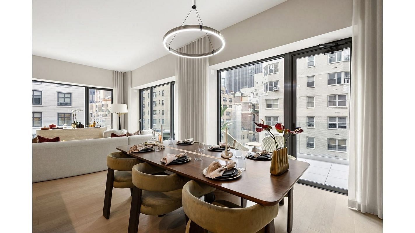 The property's one-of-a-kind lifestyle unfolds across five levels of meticulously curated amenities. Residents may choose the Oasis Garden on the fourth floor, featuring a game room with dual catering kitchens, children's playroom, and a landscaped outdoor terrace. Alternatively, on the 13th floor, CLUB13 offers an integrated indoor-outdoor lounge and bar open to a covered terrace designed for entertaining in every season. At its peak, a rooftop terrace crowns the building, perfect for al fresco dining and entertaining surrounded by views of the city skyline and Central Park.