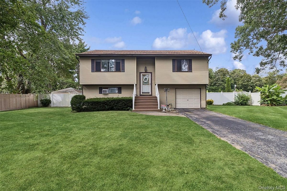 Welcome to this Spacious Hi Ranch located on just shy Half Acre. The location lends itself to easy access to all transportation and shopping. The first floor is open to the formal living room, dining room or third bedroom and Eat in kitchen. The ground floor level includes a Den with sliders to the large backyard, bedroom, laundry with half bath and access to the garage for ease. Plenty of storage! The backyard is a blank canvas for endless possibilities. Don't miss this opportunity!
