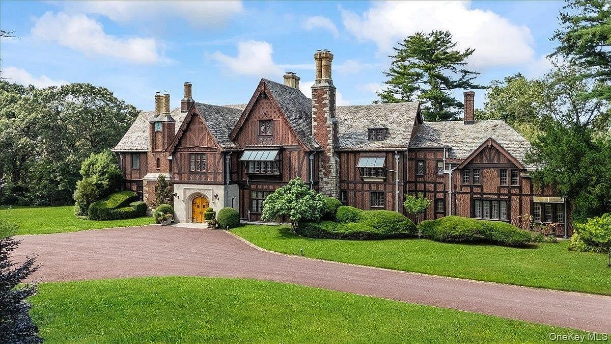 The Chimney's-- a rare opportunity to own a one-of-a-kind magnificent Gold Coast WATERFRONT estate. This is a property that embodies elegance, scale, and privacy. Set on 12 secluded acres with 450 feet of DIRECT WATERFRONT, The Chimneys is a grand Tudor manor built from herringbone brick, stone, and timber — materials that speak to a level of construction that simply cannot be replicated today. Behind its gated entry lies old-world grandeur and sophistication, set against the backdrop of sweeping water views. Inside, the home offers soaring ceilings, intricate moldings, and six marble fireplaces. A 40-foot salon, paneled Georgian library, formal dining room, music room, and expansive kitchen with butler's pantry showcase its thoughtful design for both entertaining and daily living. The residence features multiple en-suite bedrooms, including a primary suite with original paneling, a marble bath, and a formal dressing room. Elevators seamlessly connect all levels of the home, offering ease and convenience without compromising its historic charm. The carriage house includes a two-bedroom apartment and five-car garage, ideal for guests, staff, or extended family. Located in the prestigious village of Mill Neck, this estate offers the rare combination of seclusion and convenience. Just 30 miles from Manhattan, with easy access to world-class shopping, dining, country clubs, and yacht clubs, this North Shore enclave is one of the most coveted addresses on Long Island. This is more than a home — it's a legacy estate, an architectural treasure, and a lifestyle investment that will stand the test of time.