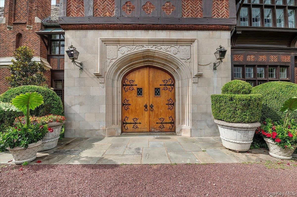 The Chimney's-- a rare opportunity to own a one-of-a-kind magnificent Gold Coast WATERFRONT estate. This is a property that embodies elegance, scale, and privacy. Set on 12 secluded acres with 450 feet of DIRECT WATERFRONT, The Chimneys is a grand Tudor manor built from herringbone brick, stone, and timber — materials that speak to a level of construction that simply cannot be replicated today. Behind its gated entry lies old-world grandeur and sophistication, set against the backdrop of sweeping water views. Inside, the home offers soaring ceilings, intricate moldings, and six marble fireplaces. A 40-foot salon, paneled Georgian library, formal dining room, music room, and expansive kitchen with butler's pantry showcase its thoughtful design for both entertaining and daily living. The residence features multiple en-suite bedrooms, including a primary suite with original paneling, a marble bath, and a formal dressing room. Elevators seamlessly connect all levels of the home, offering ease and convenience without compromising its historic charm. The carriage house includes a two-bedroom apartment and five-car garage, ideal for guests, staff, or extended family. Located in the prestigious village of Mill Neck, this estate offers the rare combination of seclusion and convenience. Just 30 miles from Manhattan, with easy access to world-class shopping, dining, country clubs, and yacht clubs, this North Shore enclave is one of the most coveted addresses on Long Island. This is more than a home — it's a legacy estate, an architectural treasure, and a lifestyle investment that will stand the test of time.