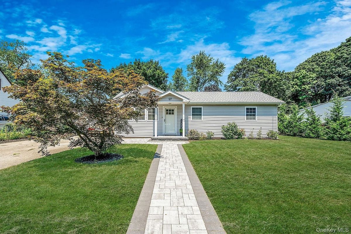 Experience modern luxury in this stunning remodeled 3-bedroom, 1-bath ranch nestled on a beautifully manicured .25-acre lot in Brentwood. Fully renovated in 2022, this exquisite residence features all-new wood paneling throughout, a new roof, siding, windows, doors, and more. Inside, enjoy a master bedroom, high-end finishes, central air, natural gas heating, a custom in-ceiling speaker system in the bathroom, brand-new plumbing, and new 200AMP electrical service with each room on its own dedicated breaker. The open-concept layout blends elegance and comfort, with seamless flow from the sunlit living area to the stylish eat-in kitchen. Additional amenities include soffit lighting around the entire home, an in-ground sprinkler system in the front yard, a drip line irrigation system for the privacy hedge, a brand-new PVC fence enclosing the property, and a private patio perfect for entertaining. Appliances not included in the sale. Located on a quiet street in Brentwood, close to schools, parks, shopping, and transportation. A move-in ready gem with top-tier upgrades, just waiting for you to call it home!