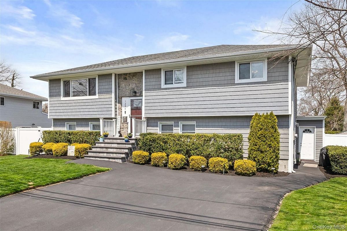 This stunning modern high ranch sits gracefully on a desirable corner lot, enclosed by a pristine white PVC fence that offers both privacy and curb appeal. Surrounded by gorgeous landscaping and lined with majestic Leyland Cypress trees, the property feels like a private retreat - lush, serene and beautifully maintained. The outdoor space is nothing short of a private oasis-featuring a sparkling in-ground pool, a luxurious hot tub, an outdoor shower for those warm summer days, and a thoughtfully designed dog run and a gorgeous paved patio making it perfect for both relaxation and everyday living. Step inside to an inviting open-concept upper level where natural light pours into a beautifully designed kitchen, seamlessly flowing into the living room and dining area. This elegant combination creates the perfect space for entertaining or simply enjoying time at home, with modern finishes and a warm, welcoming feel throughout. Upstairs offers three spacious bedrooms and a full bath including a serene primary suite complete with its own laundry area, providing a peaceful retreat at the end of the day. The lower level is equally impressive, featuring a gorgeous den centered around a cozy wood-burning fireplace-ideal for relaxing evenings. This level also includes an additional bedroom, a full bathroom, laundry and a private office space, perfect for working from home or accommodating guests. This home truly blends style, comfort, and functionality, offering the perfect balance of indoor elegance and outdoor luxury.