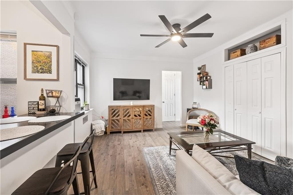 Nestled on the fourth floor with an inviting southeastern exposure, this charming 3-room co-op in Bay Ridge offers the perfect blend of modern comfort and classic sophistication. Step inside to discover a world of contemporary living bathed in natural light. Inside, the kitchen has undergone a stunning transformation with pristine white cabinets, a stylish stone backsplash, and sleek granite countertops. High-end stainless steel appliances elevate your culinary experience, and a thoughtfully designed pass-through with a beautifully crafted wood countertop & chic bar stools provides an ideal space for casual dining. The unit boasts new flooring, high ceilings, extra closets, all-new doors, creating an airy and elegant ambiance. The renovated bathroom is a luxurious retreat with tasteful white subway tiles, a contemporary vanity, & new medicine cabinet. The generously sized bedroom comfortably accommodates a queen-size bed and offers scenic views of a magnificent mansion, ensuring peaceful nights. This co-op offers a suite of desirable amenities, including a live-in superintendent, laundry facilities, & a beautiful 1936 entrance lobby with its marble floors and graceful archways, you'll feel a sense of timeless elegance. Convenience is at your doorstep with just 2.5 blocks to 3rd Avenue, where you'll discover Bay Ridge's finest restaurants, coffee shops, supermarkets, and charming cafes. Commuting is a breeze with the nearby R train, 3rd and 5th Ave buses, NYC express buses, and easy access to the NYC ferry. Embrace the outdoors with leisurely strolls and activities at scenic Shore Road Park, & explore the beauty of the Narrows Botanical Gardens. The community comes alive with free concerts, yoga sessions, movie nights, bike paths, baseball & soccer games. Experience the vibrant local scene with weekend farmer's markets, the bustling 86th Street shopping strip, summer strolls, and lively parades.