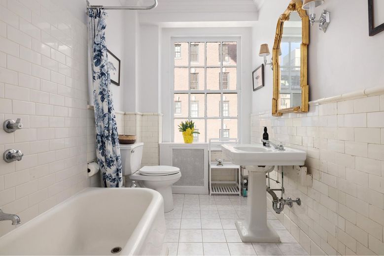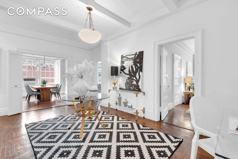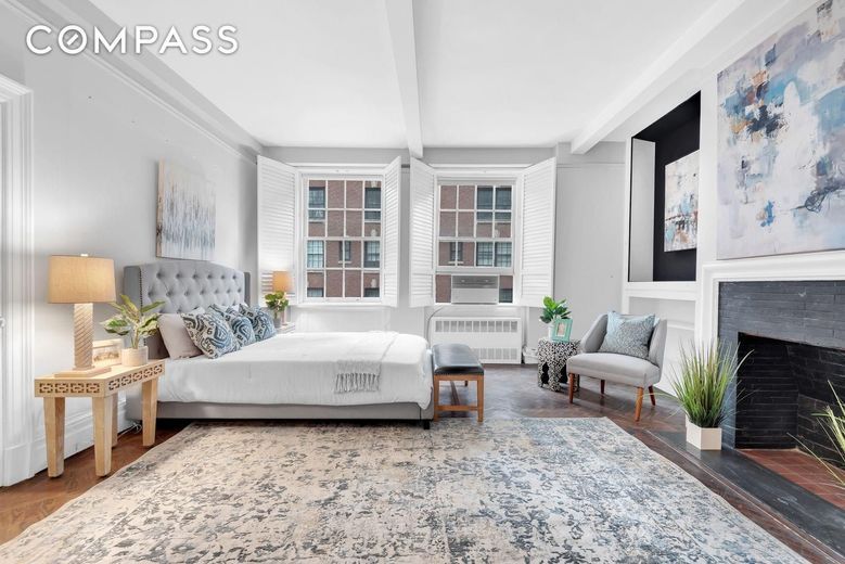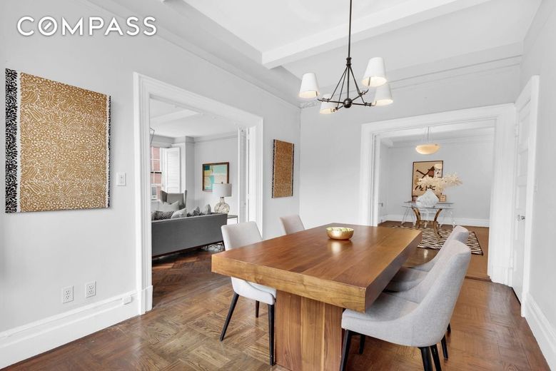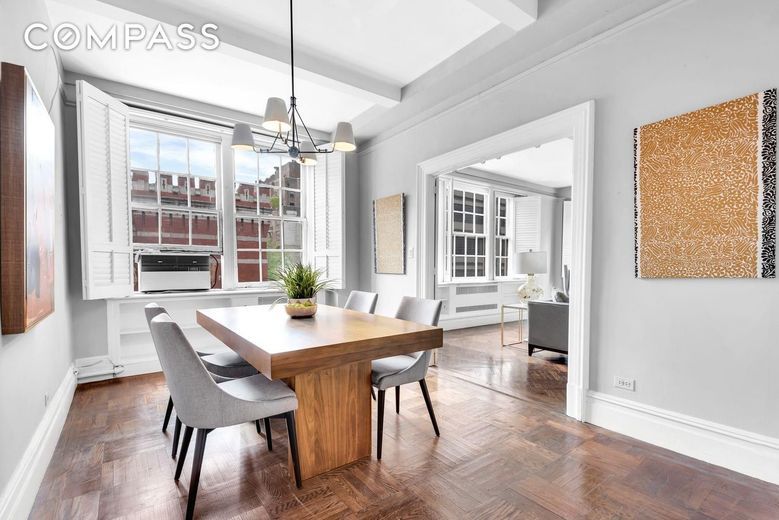 As you arrive, you are greeted by a spacious, versatile Gallery currently designed as a Dining Room, providing the perfect space for both elegant entertaining and everyday living. With its generous size, this area can easily be reimagined to suit your needs. The open flow leads effortlessly into the Kitchen as well as the bright and airy Living Room, featuring northern and western exposures that bathe the space in natural light throughout the day. A wood burning fireplace adds both warmth and charm, while stunning prewar details like soaring 9.6 ceilings and four over four windows elevate the room''s character.