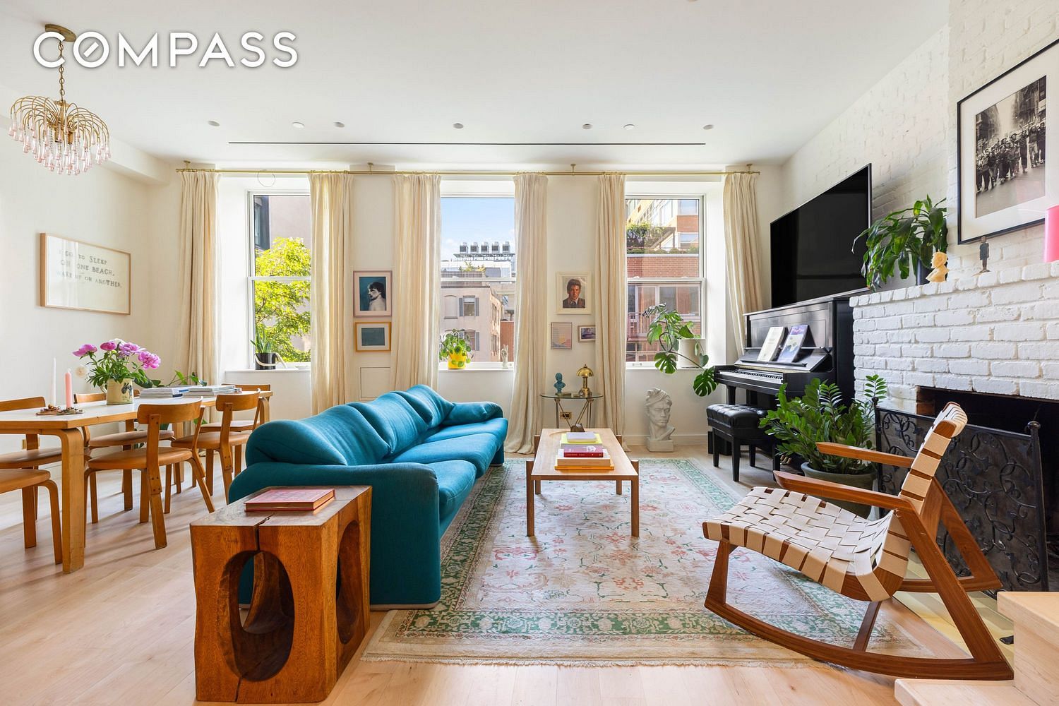 Welcome to the most stylish little duplex in the West Village, complete with your own private rooftop terrace! Lovingly transformed by IDSR Architecture into a delightfully digestible home a few years back, this 2-bedroom, 1.5-bath charmer offers primo living on the West Side. Step into this sun-drenched gem, and you'll be greeted by a staircase so dramatic it deserves its own spotlight. It leads you and your guests up to a lush, irrigated rooftop with Midtown views and a cheeky peek at the Hudson River. But hold your horses! That staircase also lets light flood into the living room, perfect for binge-watching or just chilling. The custom kitchen is a foodies paradise, packed with top-notch brands like Kallista, Wolf, and Fisher & Paykel. It's a masterclass in design, with the ideal mix of open shelves, closed cabinets, and stealthy under-counter appliancesa feast for the eyes. While youre flipping that omelette or mixing a mean cocktail, your pals can either crack up with you on a counter stool, wrap up a meal at the dining table (seats eight comfortably), or get ready for a heated game of Parcheesi by the wood-burning fireplace.
