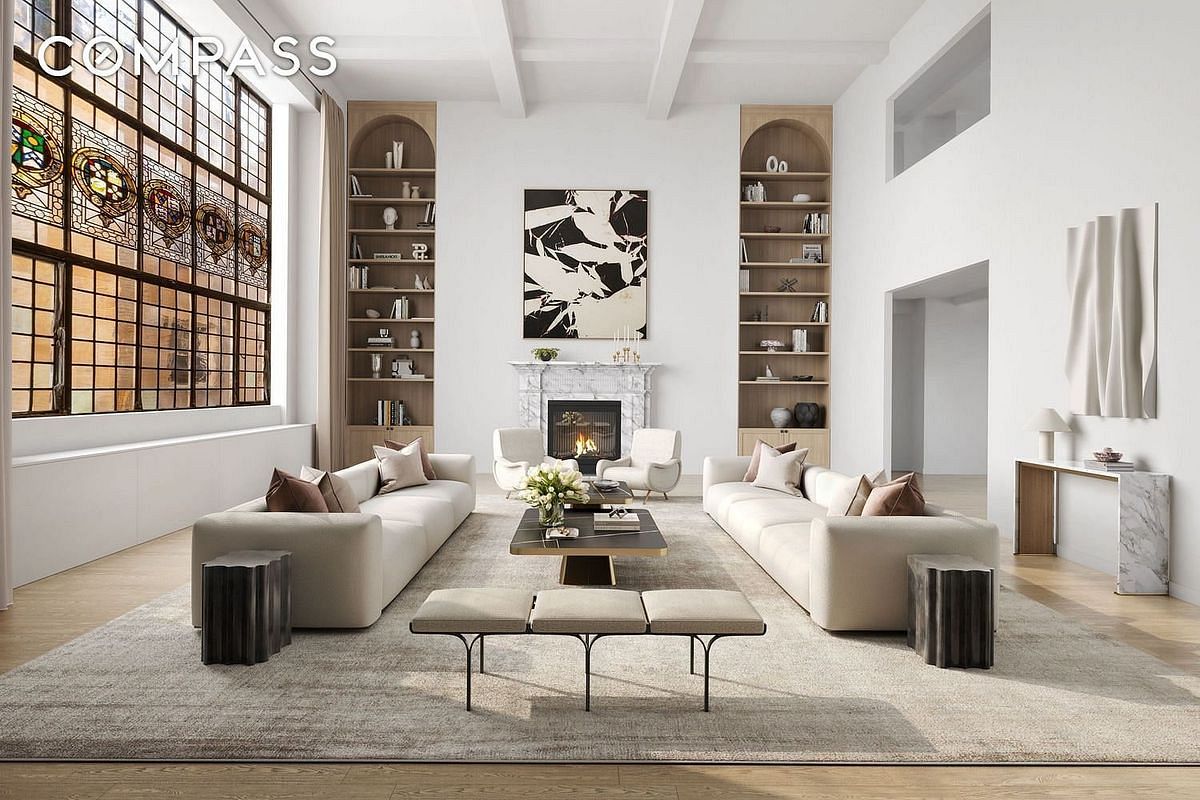 The dramatic grand living room remains the centerpiece, distinguished by a soaring 20ft double-height ceiling, magnificent stained-glass window and stately fireplace - an extraordinary backdrop for both gracious entertaining and serene living. Beyond, the home offers the framework for a remarkable chefs kitchen and gracious dining room, a grand primary suite with walk-in closets and spa-style bathroom, complemented by three additional bedrooms, ensuring both scale and versatility for modern lifestyles.