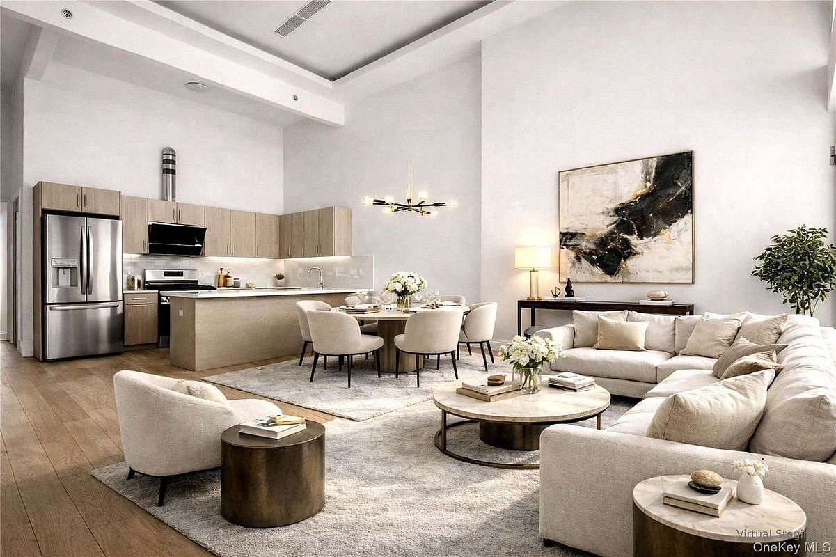 Perched atop the brand-new Fowler Park condominium in the vibrant heart of Flushing, Penthouse 8B is a rare top-floor luxury residence offering 3 bedrooms and 2 bathrooms with approximately 1,282 square feet of interior living space and soaring 12.8-foot ceilings that create an open, light-filled atmosphere. This exceptional penthouse features two private outdoor spaces, including a 50 sq ft rear balcony and an expansive 225 sq ft south-facing terrace with unobstructed views toward Flushing Meadows Corona Park, delivering a seamless indoor-outdoor lifestyle ideal for entertaining and relaxation. The residence is thoughtfully equipped with modern comforts, including an in-unit washer and dryer, central air conditioning with separate zoned controls, and a sleek kitchen featuring a center island and dishwasher. Set within a boutique development of just 29 residences, the building offers contemporary design and quality construction, ideally located across from Al Oerter Recreation Center and moments from parks, botanical gardens, supermarkets, and daily conveniences. Excellent transportation access includes the 7 train, LIRR, Q58 bus, and major highways, making Penthouse 8B a unique opportunity to own a private, high-end residence in one of Flushing's most dynamic neighborhoods.