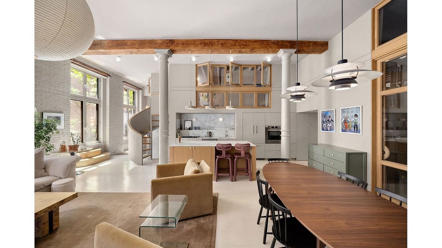 Shapeless Studio, the acclaimed Brooklyn-based design firm, has expertly curated the space to combine the building's industrial past with a sleek, modern identity. The space has been thoughtfully reimagined to enhance both livability and style, with every detail carefully considered to maintain the feel of an authentic New York artist's loft. The natural limewash on the brick walls brightens the space, and the durable white cedar floors add a touch of warmth and elegance throughout.