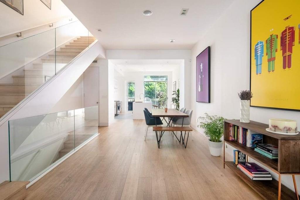 An historic townhouse seamlessly transformed by award-winning architect Suchi Reddy. 134 Manhattan Avenue combines the quiet space of a single-family townhouse and the flexibility of a two-family certificate of occupancy, with a garden floor that can function as the 5th bedroom, a self-contained guest suite, or a wholly private apartment. The townhouses Queen Anne exterior was meticulously restored to its original glory in 2013, with the interior reimagined as a sun-filled and tasteful sanctuary. The interior palette includes architectural glass for the staircase enclosures, oak floors, updated recessed lighting, and freshly painted white walls throughout.