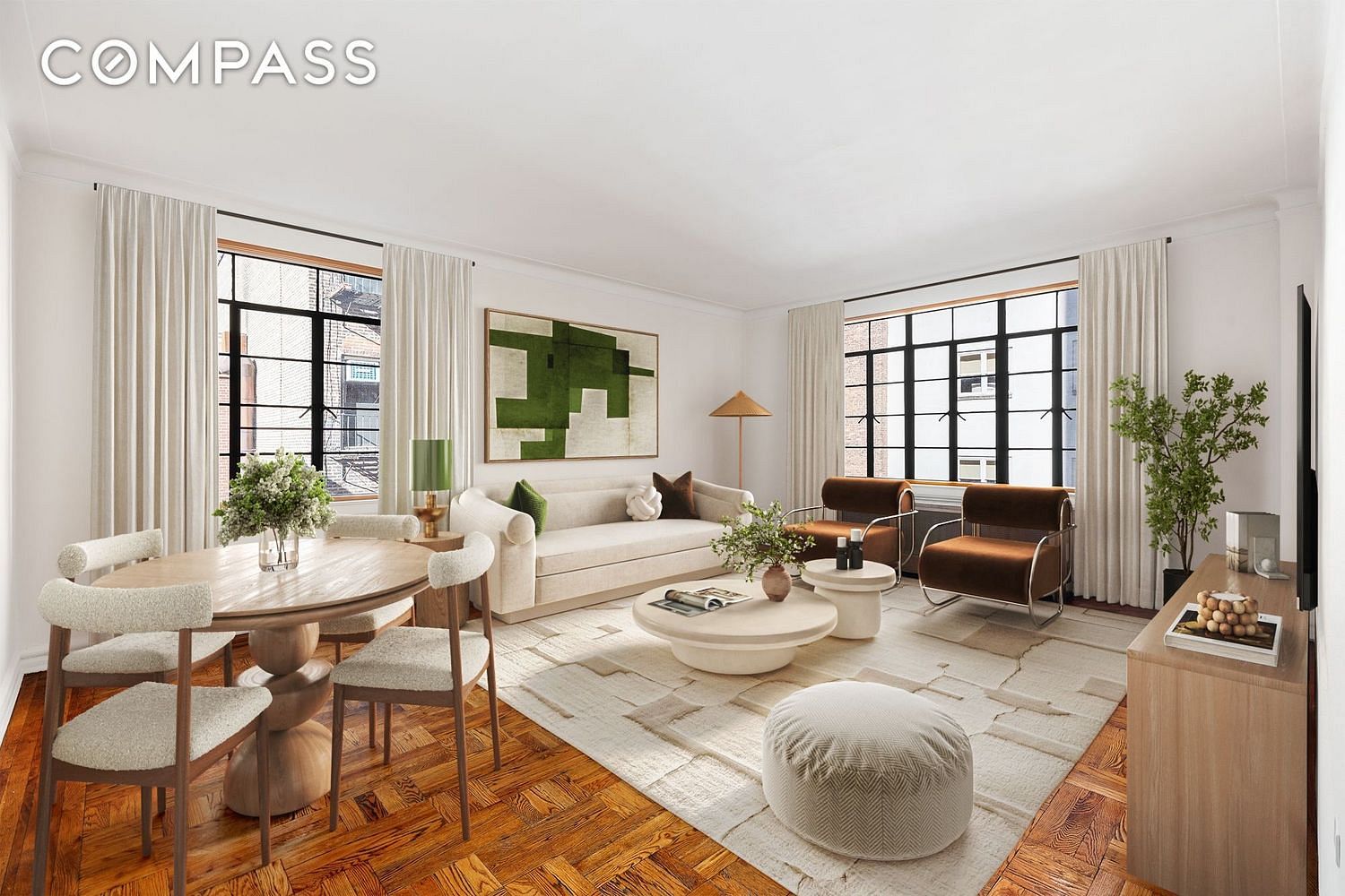 Located in the heart of Murray Hill, this 850+/- square foot 1 bedroom, 1 bathroom apartment has all of the pre-war characteristics that you are looking for...generous rooms, high ceilings, oversizedcasement windows, solid oak parquet flooring, a proper foyer, and original period detailing.