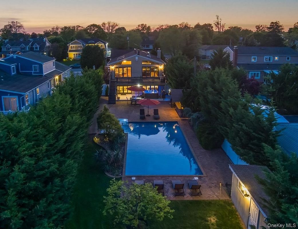 Waterfront luxury meets modern comfort at this reintroduced gated compound in Biltmore Shores. Set on an impressive 314 foot deep property from curb to bulkhead, this home offers the best of coastal living with a 20x40 inground pool, spa, patio, upper deck, and private boat slips along a scenic canal just off Massapequa Cove.