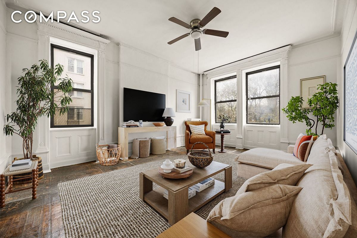 Unleash your creativity and design the home of your dreams in this sprawling and sunny, third floor legal 2+ bedroom co-op that easily becomes a 3 bedroom apartment! With soaring ceilings, generously-sized rooms, and direct views of Prospect Park, this home can be a true show-stopper. Located in a stunning Beaux Arts elevator building, directly across from Prospect Park in prime center Park Slope, this property offers the perfect canvas for your ideal living space.