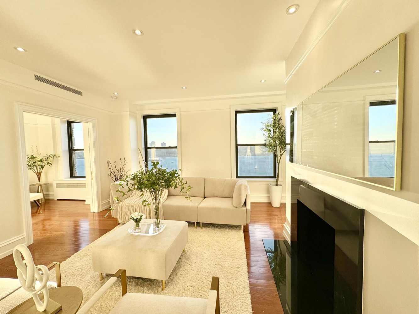 This one-of-a-kind Sponsor masterpiece with no board approval is the ravishing and rare riverfront home of your dreams. Magical river views and mesmerizing sunsets are the star of the show in this breathtaking triple-mint two-bedroom two-bathroom residence that features an extraordinary new and meticulous renovation. Upon entering, you are greeted with a dazzling living room with decorative fireplace that is perfect for glamorous entertaining and watching the boats go by. The stunning new open chefs kitchen with dining peninsula boasts gorgeous custom cabinetry with all the bells and whistles to satisfy the most discerning gourmet chef, including Bosch appliances, gorgeous quartz countertops and quartz backsplash. The master bedroom, also with river panoramas, is luxuriously large with an enormous walk-in closet, and the riverfront second bedroom is perfect for children or guests and can also function as a den or dining room. Hidden behind a pocket door off the living room is a spacious home office. Other incomparable features include two outstanding Calacatta marble bathrooms with Kohler fixtures, a washer/dryer, gorgeous white oak floors, central air-conditioning, soaring ceilings, stunning moldings, excellent closets, designer lighting, new double-pane windows, and more. Apartment 10C is a one-of-a-kind trophy home that combines all the classic prewar style you desire and all the contemporary amenities you need. You can have it all -- a captivating and tranquil setting with unparalleled river vistas, a premier address and building, and the ease of no board approval -- this incomparable trophy home will take your breath away.