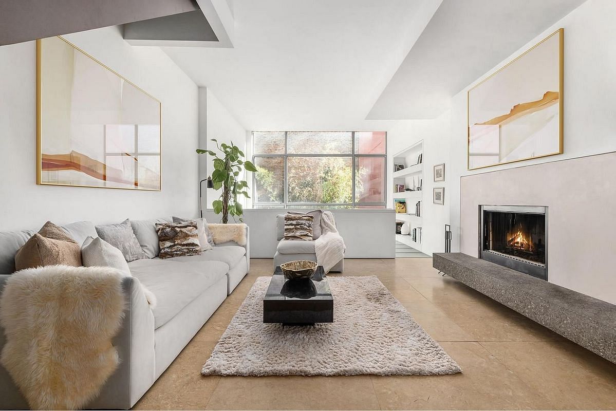 From the moment you enter through oversized iron doors into a mudroom and gallery-style entry, the home sets a tone of elevated, livable elegance. The main living floor features double-height ceilings, a wood-burning fireplace, and oversized windows facing south and west, with no direct visibility from neighbors - a true rarity in NYC living.