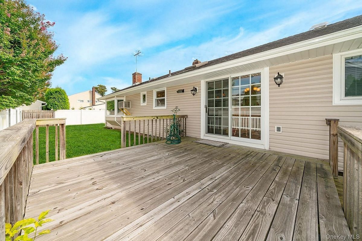 Welcome to this well-maintained 3 Bedroom, 2 Bath Expanded Ranch, offering the perfect blend of comfort and convenience. Enter inside to find a Semi-Open layout featuring a spacious Living Room, Dining Room, and a large Eat-in-Kitchen that flows seamlessly into the Great Room with vaulted ceilings and a wood burning Fireplace. This home has a Primary Bedroom, 2 additional Bedrooms, and 2 Full Bathrooms. The oversized windows provide an abundance of natural light and there are beautiful Hardwood Floors throughout. The Deck can be accessed from the Sliding Doors from the Dining Room and Sliders to the side yard. There is interior access to the Garage and a full finished Attic perfect for storage. Located in the Massapequa School District and close proximity to Schools, Shopping, Restaurants, and the LIRR. The property sits on a 80 x 113 lot and is in Flood Zone X, no flood insurance required.