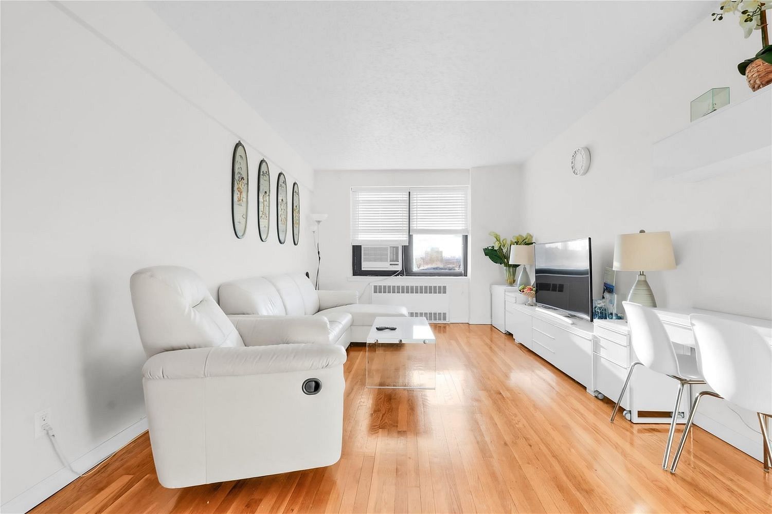 Spacious and sunlit 1-bedroom corner unit on the 6th floor with southwest exposure, offering approximately 750 sq. ft. of living space in excellent, newly renovated condition. Features include wood flooring, a modern upgraded kitchen, and a well-organized closet. Monthly maintenance is $750 and covers electricity, water, gas, heating, and property taxes. The building offers a gym, laundry, storage, outdoor playground, and both indoor/outdoor parking (subject to availability). Conveniently located just 3 minutes from bus stops and supermarkets, within top-rated School District 25 and near PS 21’s G&T Program. Owner-occupied, no subletting allowed. may be subject to term & conditions of an offering plan.