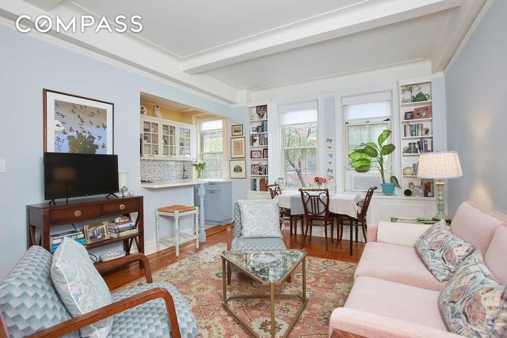 Located in an intimate pre-war co-op in the heart of the Upper West Side, this sun flooded and elegant one bedroom home has been meticulously renovated with attention to comfort and classic style.The foyer with built-in bookcases opens to a south facing living room with a dining area. Tasteful custom built-ins provide additional closet storage and create a perfect alcove desk area. The living room flows to the adjacent windowed kitchen with professional stainless appliances (Bertazonni range, Beko dishwasher, Summit fridge) glass fronted upper cabinets, white quartz countertops, breakfast bar seating for one and excellent pantry storage. The spacious light filled bedroom can easily accommodate a king sized bed and has two ample closets. The bathroom is pristine with a white marble topped vanity, Kohler fixtures, classic subway tile with a decorative accent and an oversized glass enclosed shower. Additional details include inlaid hardwood floors and 9'1" beamed ceilings. 139 West 82nd Street has a doorman daily from 8am to midnight, live-in super, a stunning landscaped roof deck, central laundry, storage and a bike room. Pet and pied a terre friendly. 80% financing permitted. Two blocks from Central Park, the Museum of Natural History and the 1, B and C trains.