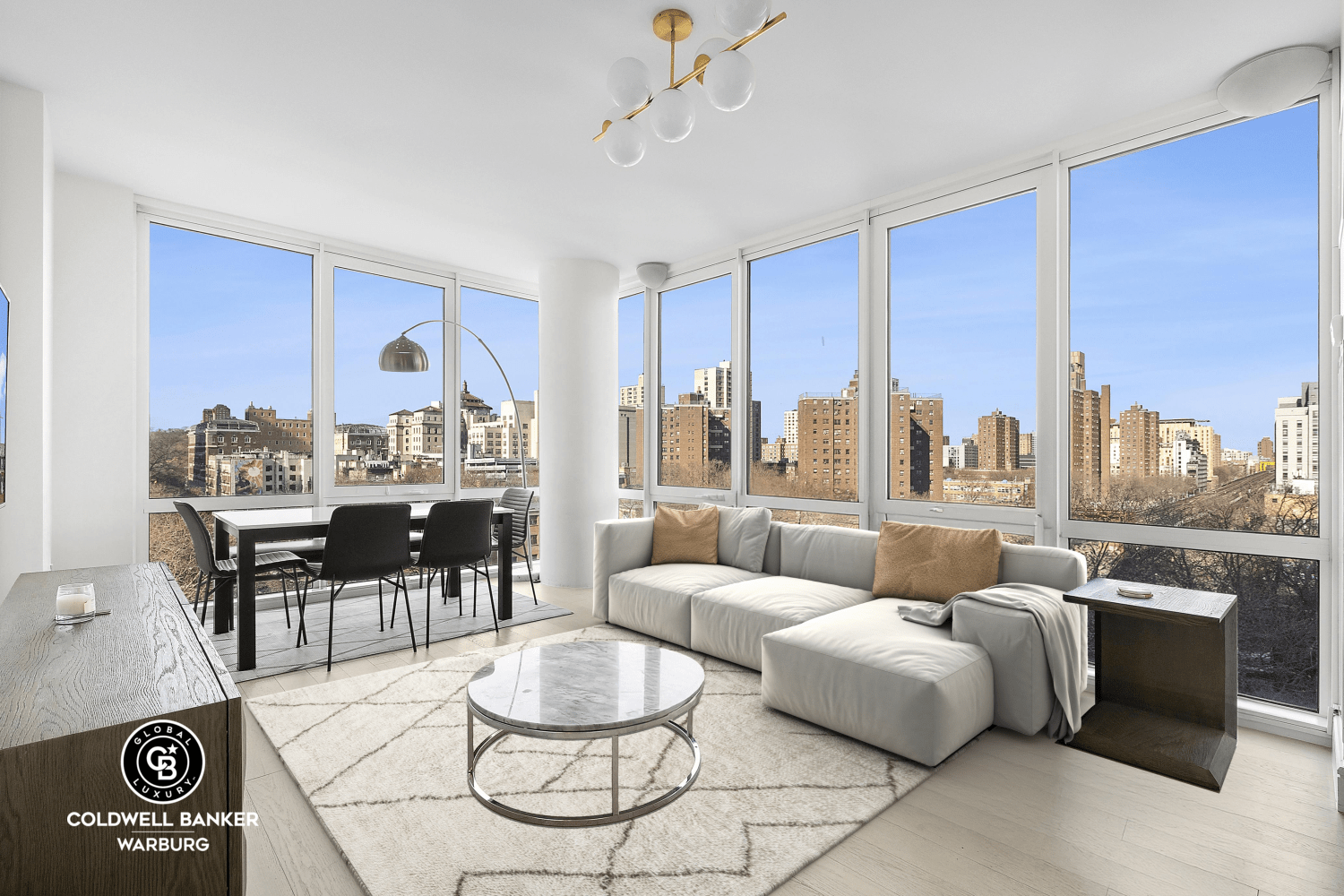 Residence #8D is wrapped in floor-to-ceiling windows and offers breathtaking northwestern exposures. The custom designed chef's kitchen features Athens Silver Cream Marble countertops, oak cabinetry, and a suite of top of the line appliances, creating the perfect space for culinary excellence. The open layout in the living and dining areas is an entertainer's dream!