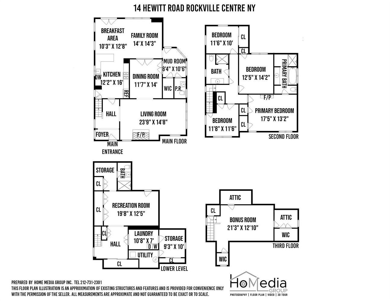 Rockville Centre brick & stucco 4-bedroom 3.5 bath English Tudor in Old Canterbury Hewitt section. Custom wood molding and trim throughout. The foyer has a built-in hall tree coat rack, bench seat, staircase with wainscoting and double swing-stained glass door. Spacious living room with wood burning fireplace. Formal dining room with 2 sets of French doors. The new chef’s kitchen has a wolf 6 burner range, farmers sink, ample cabinets and counter seating space. The breakfast area is by the rear patio doors and adjacent to the expansive den, providing a great room layout, ideal for entertaining. There's an additional rear entrance to a radiant heated mud room/office and half bath. Upstairs are 4 bedrooms and 2 bathrooms, including a king primary suite with separate shower and whirlpool tub warmed by radiant heat. There's also an oversized updated hall bath with stall shower and laundry chute. The 3rd floor is a generous walk-up attic with a bonus room and storage space. The basement has a rec room, full bath with stall shower, laundry and utilities. The new windows throughout have power shades. There are 2 zones of central duct air conditioning and central vacuum. The rear patio is fenced and gated for pet friendly living. The 2-car garage and house have a well-maintained slate roof. There's a property sprinkler system and central security alarm.