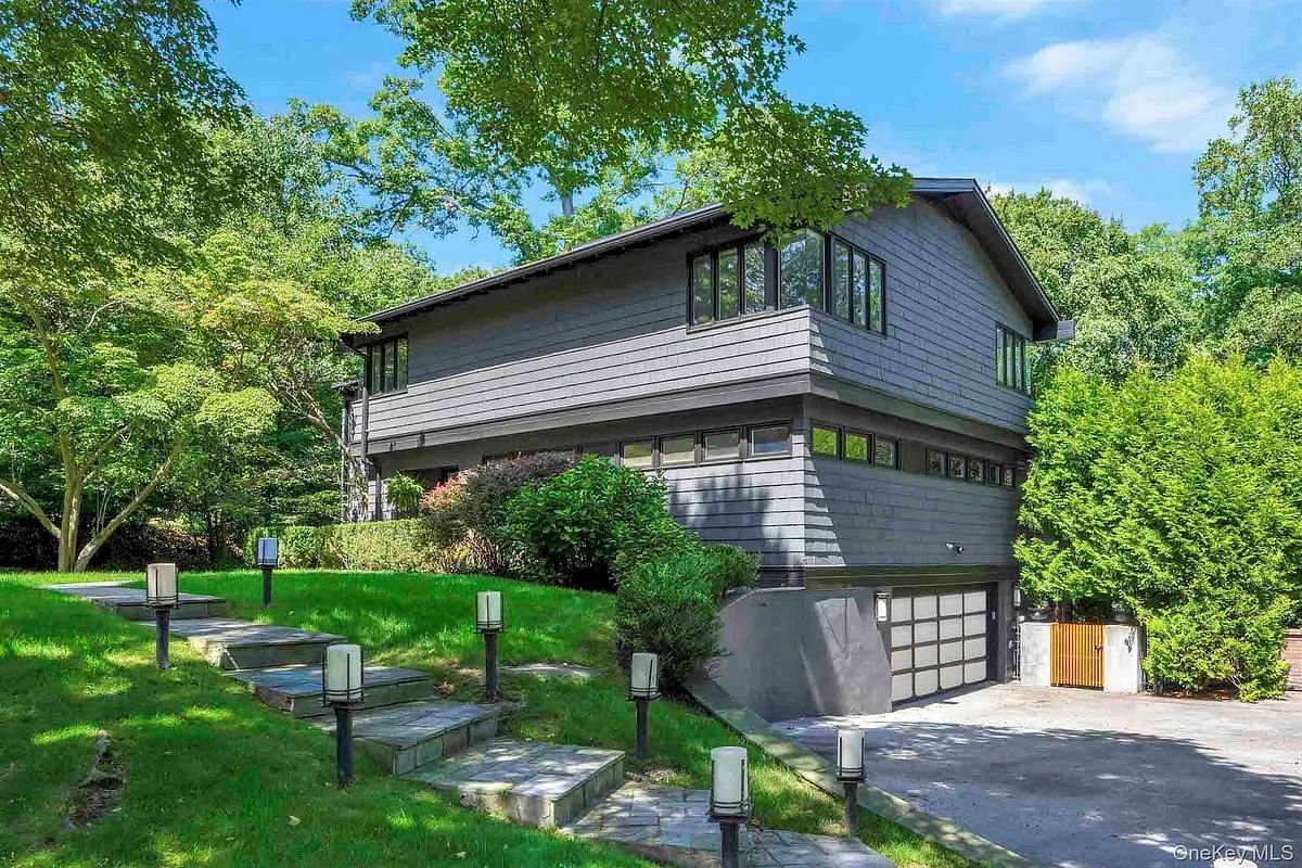 Set along the coveted Leatherstocking Trail, this striking mid-century modern home lives like a private boutique hotel. Expansive walls of glass and iconic glass-to-glass corner windows flood the interiors with light, while exposed beams and a wood-burning fireplace anchor the thoughtfully designed open-concept layout. The home is enhanced by slate and hardwood floors, clean architectural lines, and an effortless flow that balances style, warmth, and functionality. The sleek modern kitchen is both beautiful and practical, featuring stainless steel appliances, granite countertops, ample storage, and a beautiful walnut breakfast bar—perfect for casual dining or morning coffee. Step outside to a private deck overlooking lush landscaped grounds, a sparkling in-ground pool and a dedicated spa, offering true resort-style living at home. The modern lower-level pool changing room with a full bath makes poolside lounging and entertaining a true indulgence. This home invites relaxation and elevated living at every turn—from sun-drenched mornings to cozy evenings by the fire. Enjoy direct access to 2.5 miles of the Leatherstocking Trail, just 30 feet from your door. Ideal for jogs, dog walks, biking, or sunset strolls, it's nature on demand. Whether you're entertaining guests or seeking solitude, this home fosters a lifestyle of wellness, ease, and outdoor connection. Tucked away on a quiet cul-de-sac, the property offers exceptional privacy while keeping you close to everything. Just minutes from downtown Mamaroneck, the Long Island Sound, schools, parks, marinas, and major commuting routes including the Hutchinson Parkway and I-95. More than a home, this is where modern design meets natural beauty.