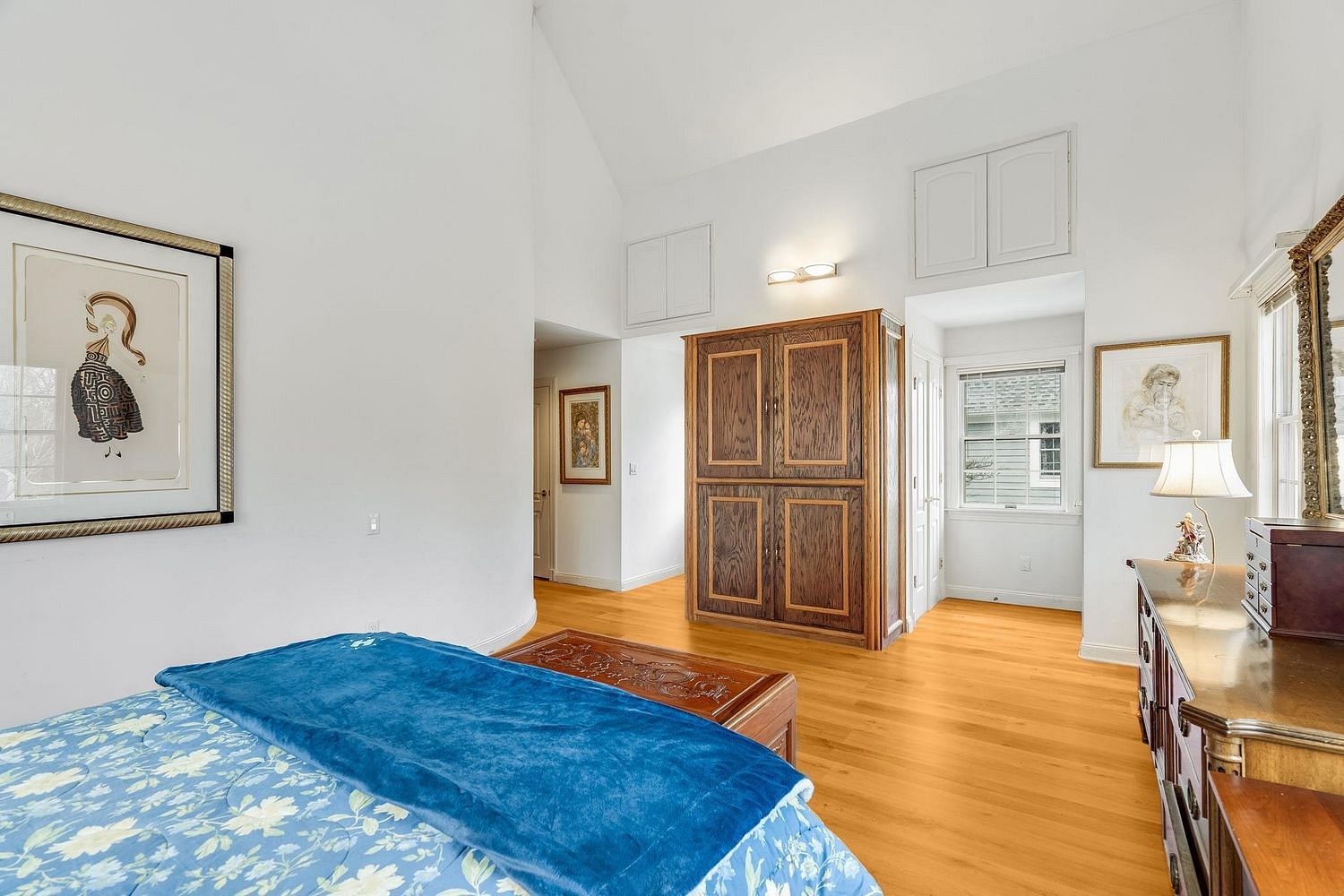 The main level features a spacious two story foyer, an open living room with fireplace and a French door leading to a private bluestone patio, a formal dining room, and a kitchen with eating area and access to a side deck—perfect for grilling and entertaining. The primary bedroom with en-suite bath is located on the first floor and includes two walk-in closets, built-in cabinetry, and a linen closet. The laundry room is also conveniently located on the main floor. There’s also a separate room currently used as a home office that could easily serve as a den or additional bedroom, offering great flexibility.