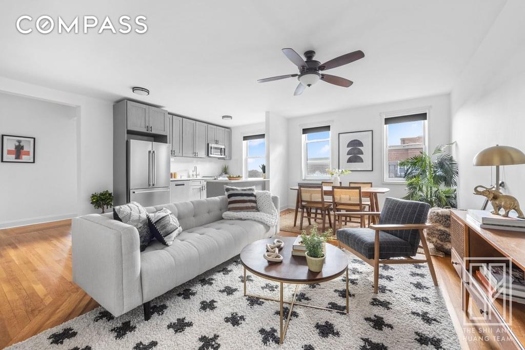 Sunshine and views all day in this bright south facing jr 4 in bucolic Windsor Terrace. Leave the hustle and bustle of the city behind as you embrace the peace of this incredibly spacious one bedroom, perched on the penthouse floor. Flooded with light and convertible to a 1.5 or 2 bedroom, this bright corner unit home features a large open living room, kitchen with dishwasher, desk/home office area, tons of closet space, and high ceilings with plenty of original charm. The bedroom easily accommodates a king sized bed and other furniture while benefiting from both eastern and southern exposures.