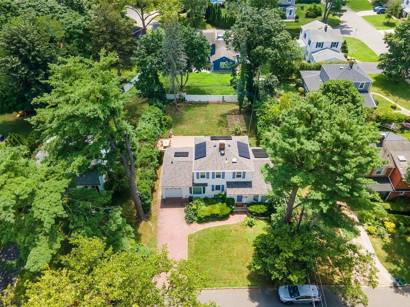Situated on an 8296 SF professionally landscaped lot, this meticulously maintained colonial home is located in the heart of Roslyn Heights. The first floor features a formal living room with a fireplace, a formal dining room, and a family room that is overlooking the spectacular rear yard. There are sliding doors open to a customized sunroom attached to the first floor. New hardwood floors throughout and ample windows allow abundant natural light to fill the rooms. The gourmet kitchen features stone countertops and a breakfast island, custom cabinets, and stainless steel appliances. The 2nd floor offers a large primary suite and There are 2 additional bedrooms & a full bathroom. In addition, there is an attached garage, solar panel and tesla charger. Renovated basement, new roof, too many to lists. The property is 6 minutes from Roslyn and Albertson LIRR Station, close proximity to 3 major highways, and surrounded by shopping, dining, and banks.